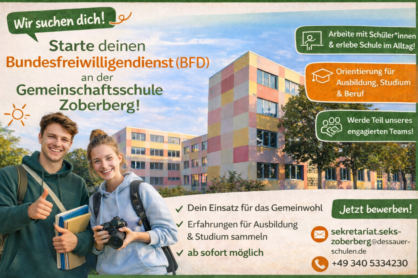 Wir fördern eine inspirierende Lernumgebung, gebaut auf den Prinzipien der Demokratie, Berufsvorbereitung und Gesundheit.
